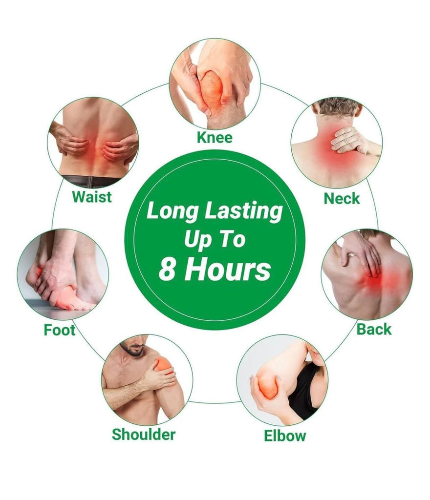 Infused with herbal ingredients, these self-heating patches penetrate deep into the joints to reduce inflammation, ease stiffness, and relieve chronic pain caused by arthritis, injuries, or overuse.